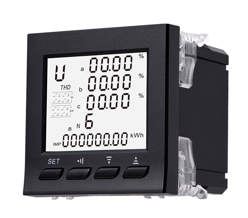 液晶諧波電力儀表是針對(duì)電力系統(tǒng)、工礦企業(yè)、公共設(shè)施、智能大廈的電力監(jiān)控需求而設(shè)計(jì)的。它能測(cè)量所有的常用電力參數(shù),包括電流、電壓、頻率、功率因素、有功功率、無功功率、有功電能、無功電能等,帶開關(guān)量輸入輸出、電能脈沖輸出和RS485通訊接口,可實(shí)現(xiàn)數(shù)據(jù)的遠(yuǎn)程傳輸。并可選配模擬量輸出、諧波含量分析、復(fù)費(fèi)率電能統(tǒng)計(jì)、事件記錄等多個(gè)功能;產(chǎn)品目前廣泛應(yīng)用于能源管理系統(tǒng)、變電站自動(dòng)化、配電網(wǎng)自動(dòng)化、小區(qū)電力監(jiān)控、工業(yè)自動(dòng)化、智能建筑、智能配電盤及開關(guān)柜中。